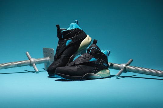 90年代のアーカイブバスケットボールシューズ「AEROJAM」を再構築。象徴的なレースカバー付きデザインに、高い屈曲性とクッション性を備えた最新スペックを融合。