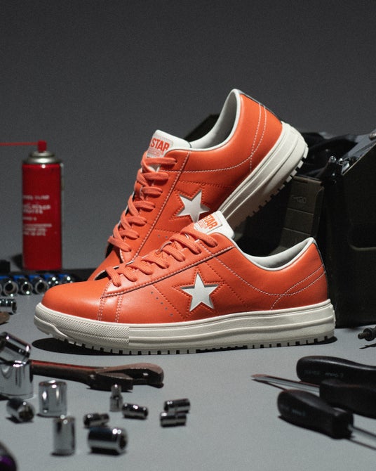 1974年誕生のアイコン「ONE STAR」をベースに、プロテクティブスニーカーに求められる性能を搭載。カラーは90年代後半に発売されたビビッドなオレンジを採用し、レトロ感漂う一足。アッパー素材は軽くて丈夫なクラレ社製クラリーノを採用し、E.V.A.パーツを踵部に内蔵したクッション性の高いインソールを搭載。