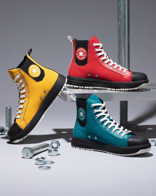 ブーツライクなサイドゴア仕様のオールスター。 電動工具ブランドをインスパイアしたカラーリングや、ナットをイメージしたサイドゴアパターンが特徴。