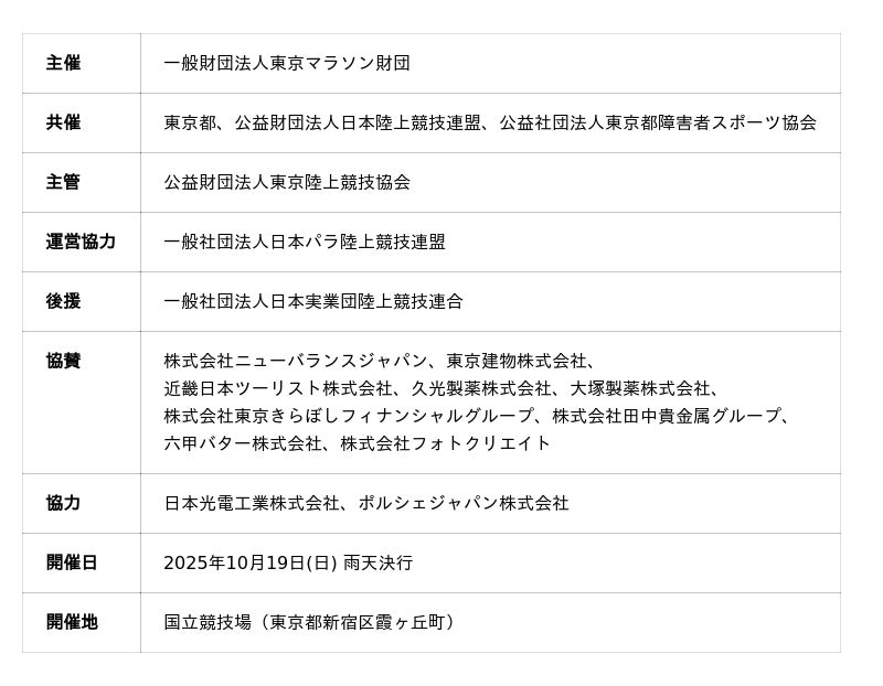 ※開催概要は本プレスリリースが発表された時点の情報です。最新情報は東京レガシーハーフマラソンの公式ウェブサイトをご確認ください。
