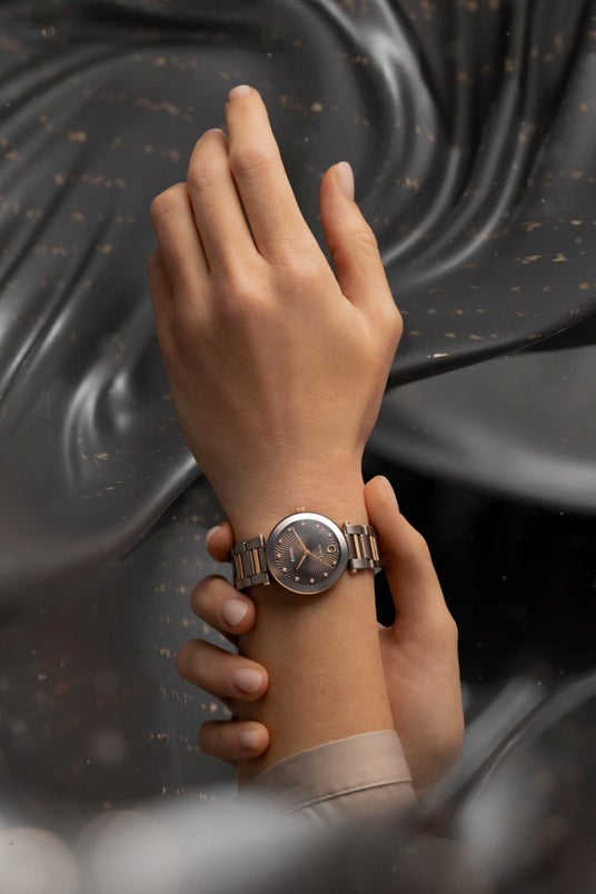 ポリッシュ仕上げローズゴールドPVDステンレススチール、ポリッシュ仕上げブラウンハイテク