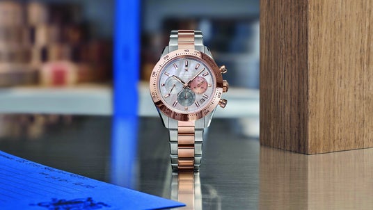 ステンレススチールが技術的な堅牢性を、ローズゴールドのベゼル、リューズ、プッシャーが温かみと深みを添えています。スポーティーなだけでもなく、過度にフォーマルでもない、汎用性を考慮した絶妙なスタイルは、アクティブなシーンにも落ち着いた場面にも合わせることができます。