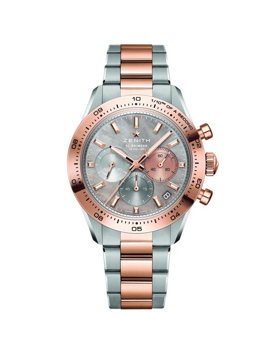 51.3102.3600/01.M3100 / エル・プリメロ 3600 自動巻 /パワーリザーブ 約60時間 / ステンレススティール・K18ローズゴールド / ケース径 41 mm / マザーオブパール文字盤 / 3色カンター / 10気圧防水 / ブラックラバーストラップ フォールディングバックル付属 / 2,695,000円(税込予価)