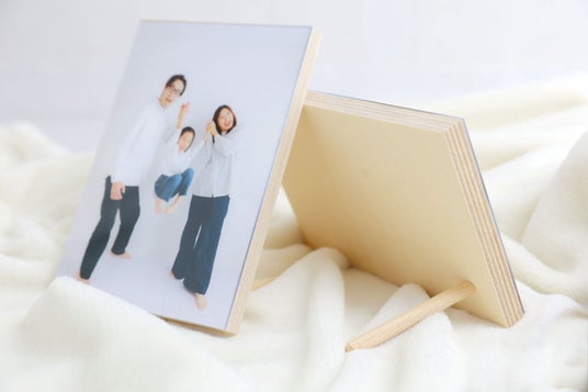 撮影当日にお撮りした写真からカメラマンがセレクトした1枚を、2Lサイズのアクリル×木製フレームにセットし、その場でお渡し。