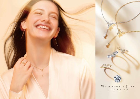 ブランドを象徴する “Wish upon a star(R)” DIAMONDは、真上から見るとふたつの星が浮かび上がる独自のカット。 「星に願いを」という想いを込め、身に着ける人の夢や希望を応援するジュエリーとして、多くの方に愛されています。