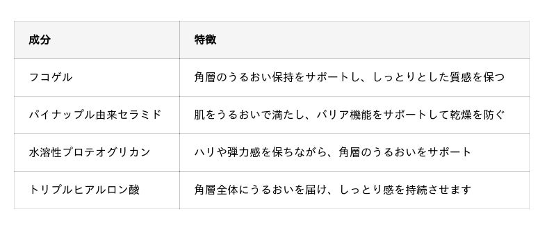複数の保湿メカニズムを組み合わせ、使用感と持続性の両立を目指しました。