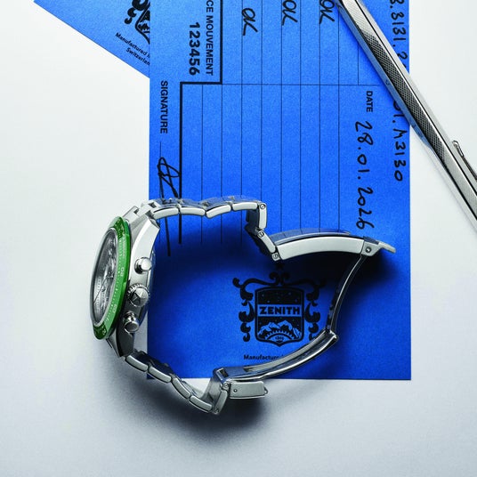 Watches and Wonders 2026において、ゼニスはこのレガシーを新たに紡ぐ「クロノマスター スポーツ スケルトン」を発表します。本作では、ゼニスを象徴するキャリバーの複雑な機構を、オープンワーク構造を通して眺めることができます。さらに、特許を取得した新たなフォールディングバックルを採用。人間工学に基づいて新開発したバックルには、性能の概念をより広義で捉え、ムーブメントのエンジニアリングと機能に対する技術革新を同時に追求するゼニスのビジョンが反映されています。
