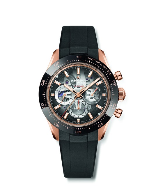 「クロノマスター スポーツ スケルトン」で、ゼニスは機構の新たな表現を探り、ムーブメントを最前面へと押し出しました。