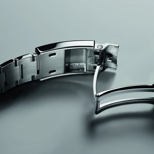 使いやすさにこだわった微調整システムは、工具を使うことなく、時計を手首に装着した状態でブレスレットを調節できる機能です。調節のために時計を取り外す必要もありません。セカンダリーカバーを持ち上げることで、2.5 mmずつ、最大で10 mmまで伸ばすことが可能となり、一日の中のさまざまなシーンに合わせて腕元へのフィット感を調節することができます。