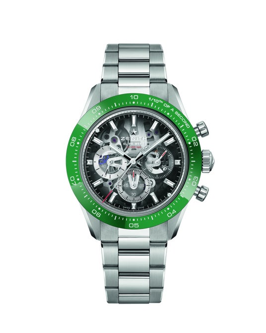03.3131.3600/01.M3130 / エル・プリメロ 3600 SK 自動巻 / パワーリザーブ 約60時間 / ステンレススティール・グリーンセラミックベゼル / ケース径 41 mm / カラーサファイア文字盤 3色カンター / 10気圧防水 / グリーンラバーストラップ付属 / 2,147,200円(税込予価)