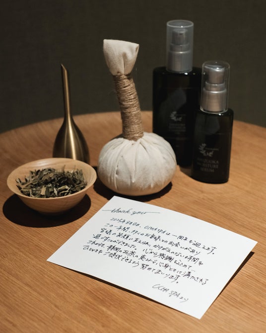 これを記念し、2025年8月1日(金)~8月31日(日)の期間中、施術をご利用のお客さま全員に、オリジナル入浴剤「茶巡湯 -Chamekuriyu-」をプレゼントいたします。
