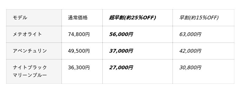 Makuake限定・最大25%OFFの早割プライス