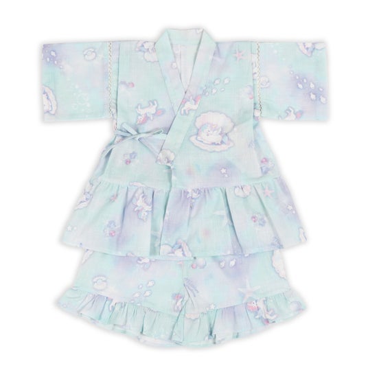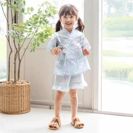 2025年コレクションは、「2WAY浴衣」「浴衣ドレス」に加え、新たに「甚平」をラインアップしました。柄も“ユニコーンシェル柄”“ユニコーンミルキーウェイ柄”“いちご水彩柄”を提案し、いずれも夏らしい爽やかな色合いでフリルやペプラムなどのディテールを取り入れ、可愛らしさをより引き立てています。中でも人気の「浴衣ドレス」は、お客さまからのご要望にお応えし、95 cm~100cmと105cm~110cmの2種類のサイズを展開しています。「甚平」は、シンプルなフォルムながらも、裾にフリルをあしらい、他のアイテムに比べ価格を抑えています。ご家庭での洗濯も可能で、夏祭りや花火大会などのイベントはもちろん、普段のお出かけやおうちでのリラックスタイムにもご活用いただけます。