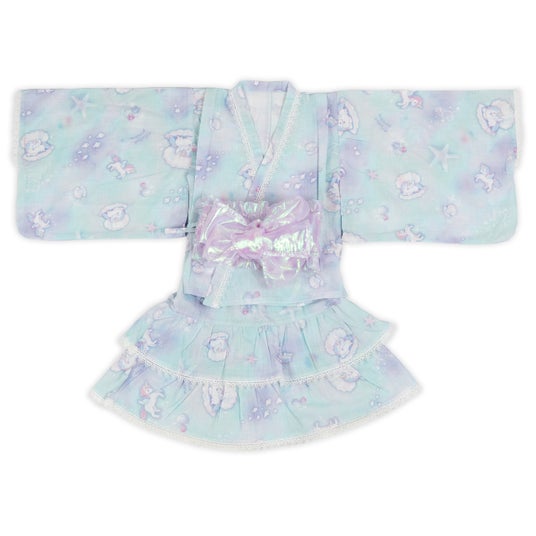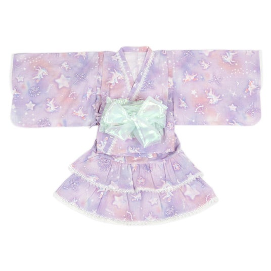 上衣とスカートに分かれている、セパレートタイプの浴衣ドレスです。帯はゴム入りで、簡単に着脱できます。