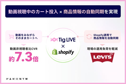 「───見て、触れて、そのまま買える」次世代の動画視聴体験を創出する「Tig(ティグ)」を提供するパロニム株式会社(以下「パロニム」)は、 リーバイ・ストラウス ジャパン株式会社の公式オンラインストアにライブコマースツール「Tig LIVE」が採用されたことをお知らせいたします。