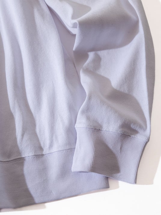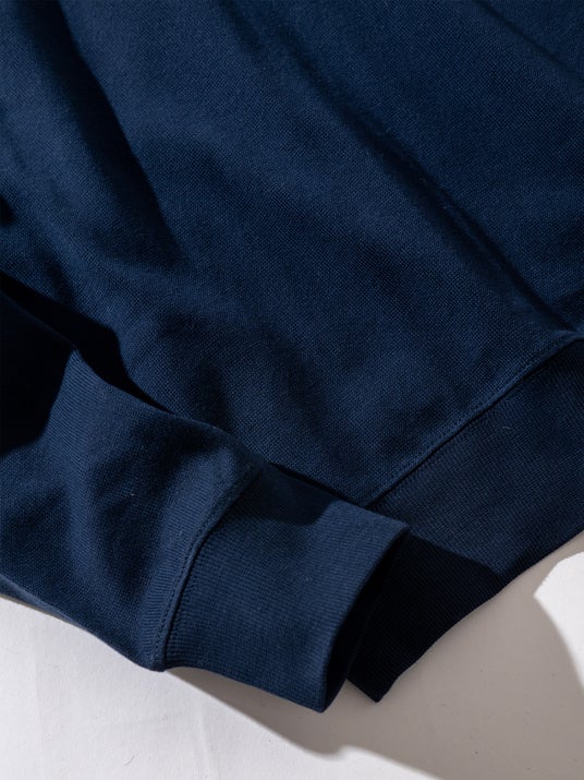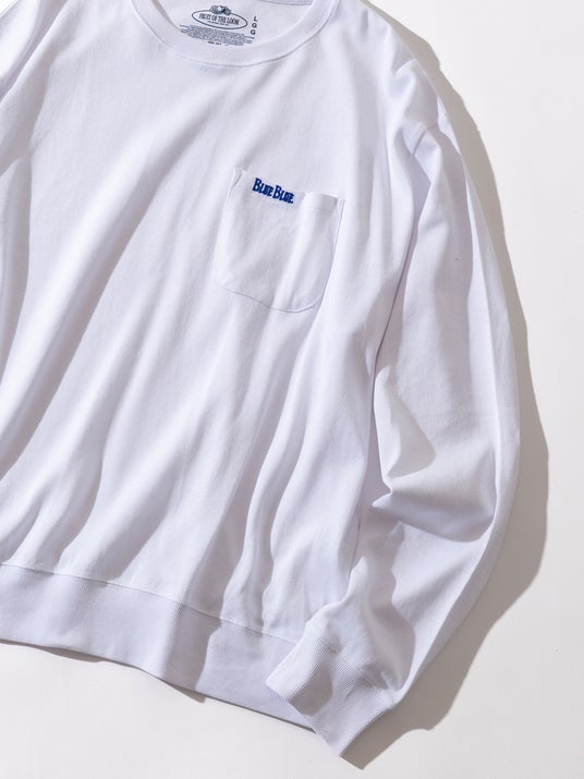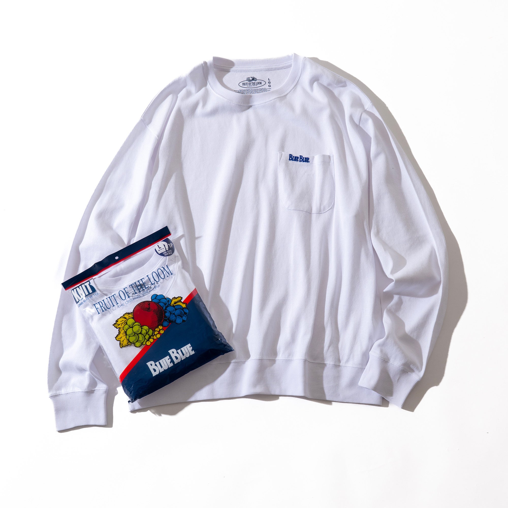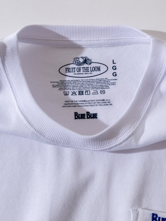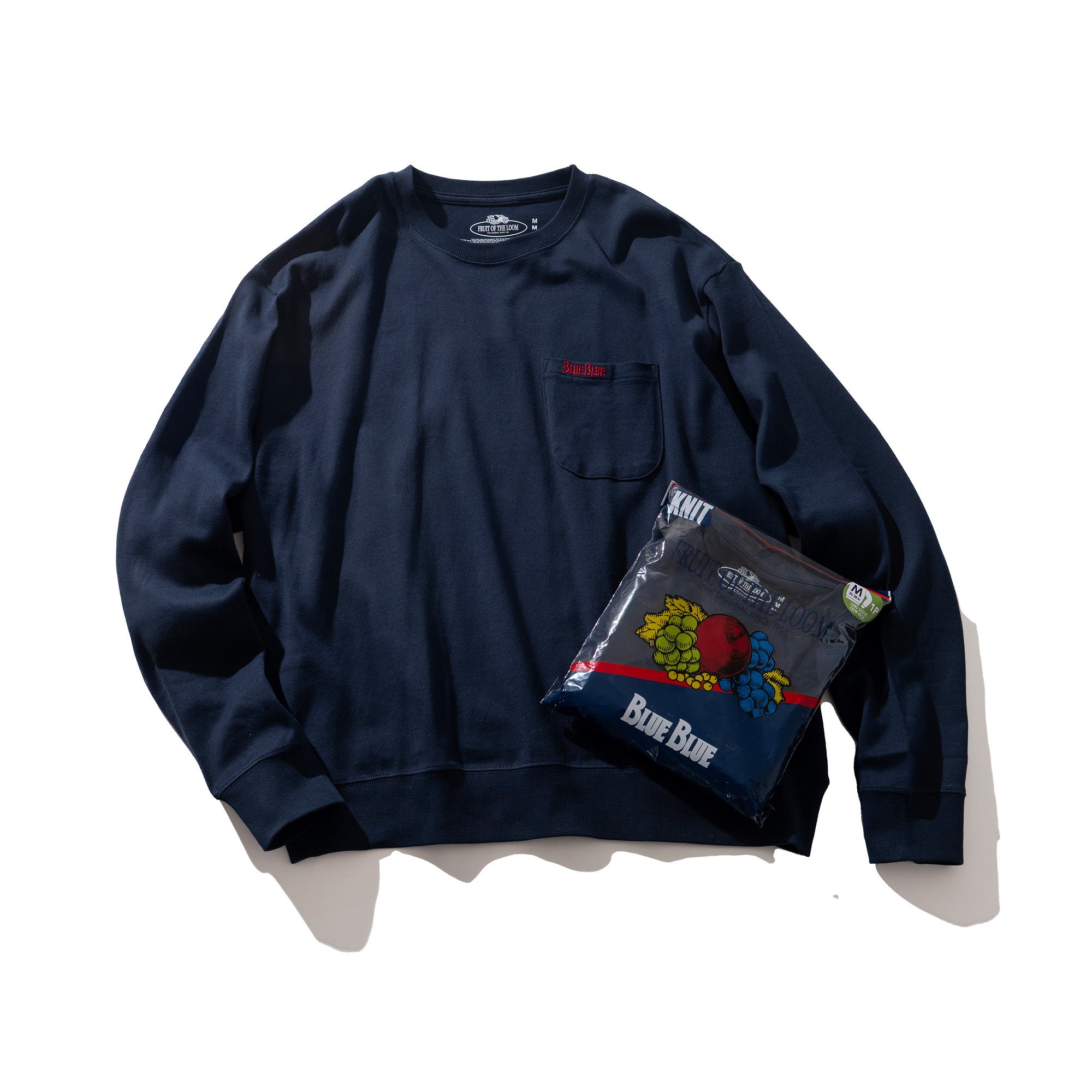 〈FRUIT OF THE LOOM〉が長年培ってきた普遍的なモノづくりを軸に、〈BLUE BLUE〉ならではの服作りの視点、ロゴ表現、カラーリングを反映し、日常に自然と馴染む一着に仕上げています。
