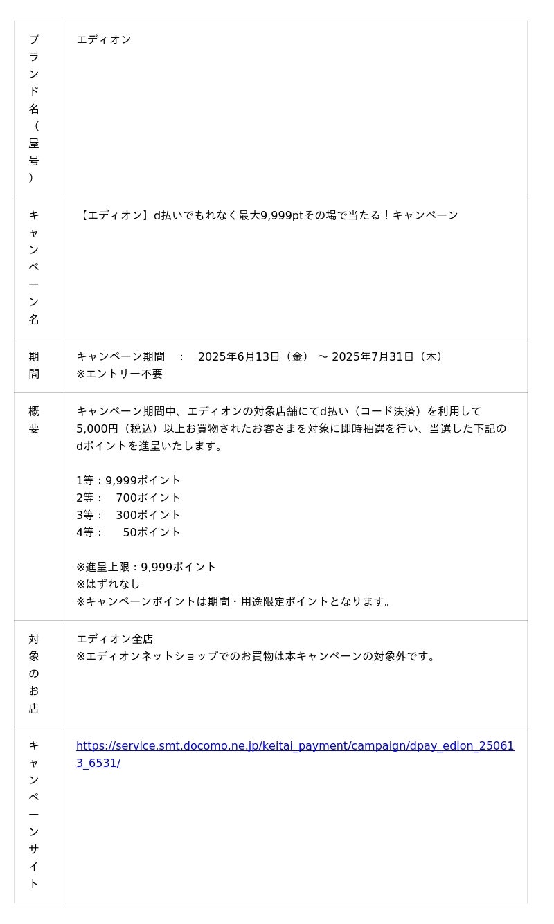 株式会社NTTドコモ(以下、ドコモ)は、「dポイント」「d払い(R)」においておトクなキャンペーンを開催いたします。詳細は、下表のとおりです。