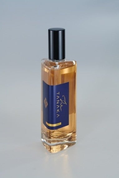 「The TANAKA 2025」は、香料だけでなくデザインにも徹底的にこだわりました。三角柱のガラスボトルは、一から金型を起こしたオリジナル仕様です。ロゴは田中貴金属の「田」をモチーフに、日本の紋所を想起させる意匠として象徴性を持たせています。パッケージ及びラベルの基調色には、卓越した品位と審美眼を感じさせる深みのあるミッドナイトブルーとゴールドを採用しました。