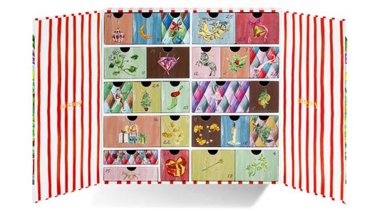アーティスト、ルーク・エドワード・ホールが手掛けた遊び心あふれるホリデー コレクション2025年の「アドベント カレンダー」、「オードゥ ソワール リミテッド エディション」(オードゥ パルファン)は、英国人アーティスト、ルーク・エドワード・ホールによる描き下ろし。インテリアデザイナーや陶芸家としても活躍する、その多彩な才能が映えるスペシャルなデザインです。カラフルで洗練されたノスタルジックな世界観と、遊び心あふれる優雅なひとときを演出します。