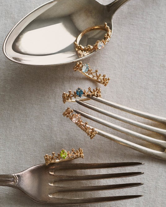 直感に導かれるまま、色石を選び、思うままに重ねる、私だけの特別なリング。ひとさじの遊び心を添えた、ビーズやモールで模ったようなクラウンには、小さなきらめきを散りばめて。自分だけのストーリーを指先に込めて、何気ない瞬間にもときめきを。