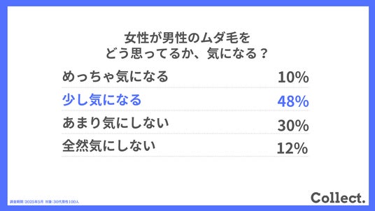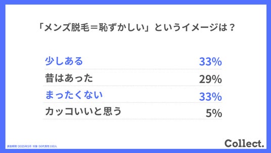 ディーエムソリューションズ株式会社(東証スタンダード上場)が運営するメディア「Collect.(コレクト)」では、30代男性100人に脱毛についてのアンケート調査を実施しました。
