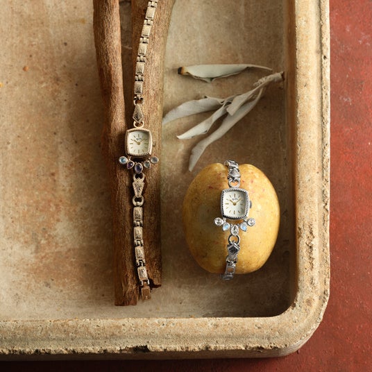 -WATCH-荘厳な教会のステンドグラスから差し込む光をイメージしてあしらわれた色石のビジュー感と、柔らかく優しい色彩は、どこかアンティークな雰囲気を感じる仕上がりに。ジュエリーウォッチという名にふさわしい贅沢なデザインは、気品と繊細さを纏う。時計としてはもちろん、ブレスレットのように身に着けてほしい逸品。