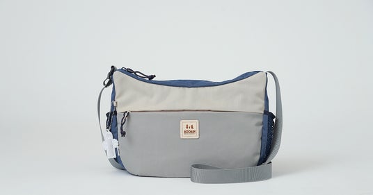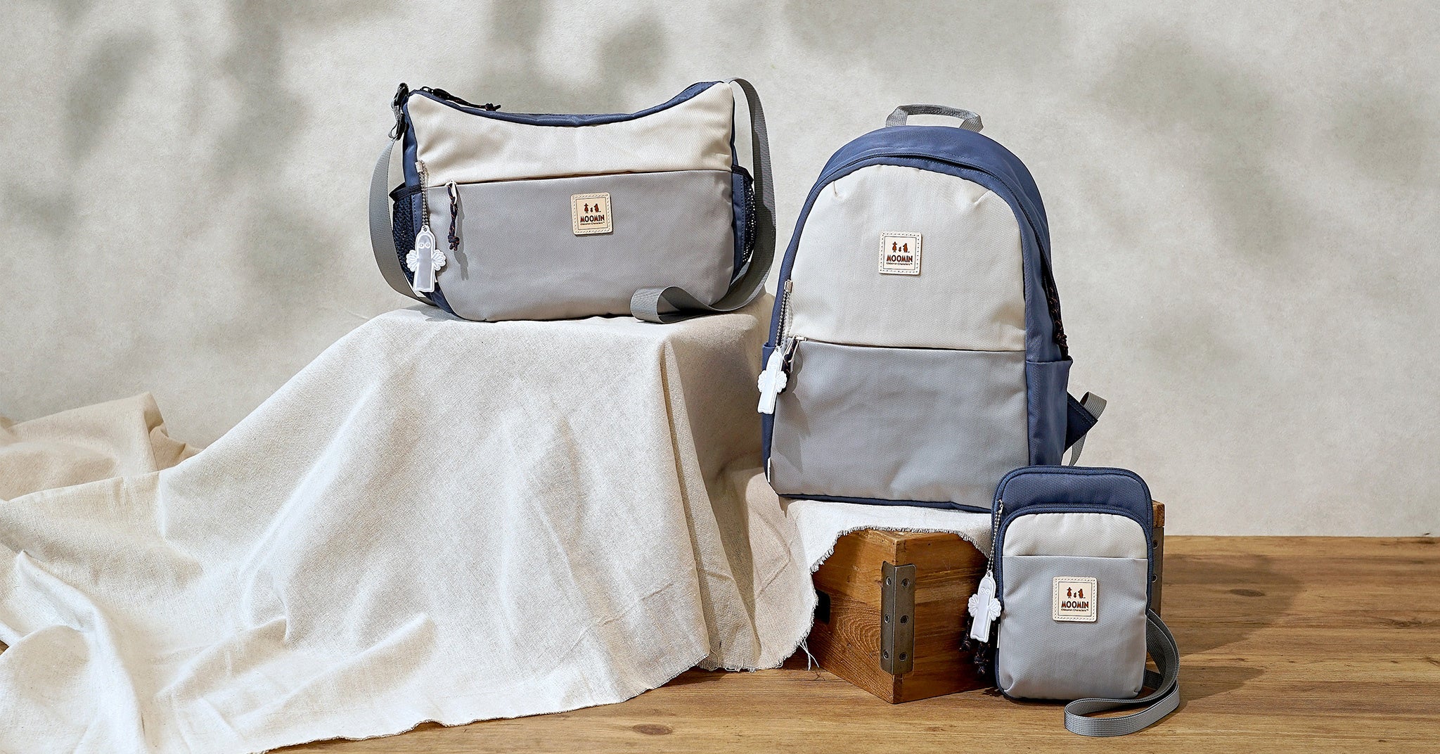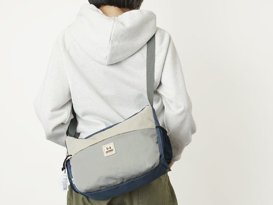 【ムーミン】洗練されたスモーキーブルーと、アウトドアの軽快な機能性が織りなす大人の遊び心。キャラクターワッペンがアクセントの薄型ショルダーバッグが、ムーミンの世界観と共に日常を優しく彩ります。