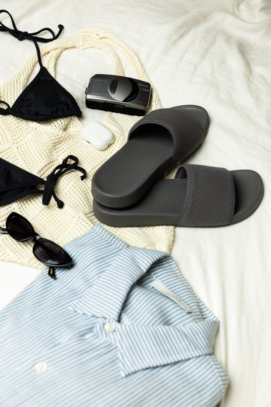 歳月を経て、素材選定からゼロベースで再設計したのが、新作の「Flip Flop」「Slide」です。ふかふかの極上のクッション性へと改めて生まれ変わった2型は、サンダルを “ちょっとそこまで” の履物ではなく、“素足で過ごす時間そのものを心地よくするアイテム” として再定義します。