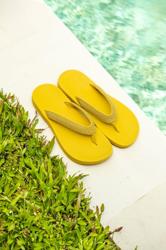 涼しさを履く。サトウキビとユーカリで作る、新作ビーチサンダル。汗ばむ季節でも足元はさらりと快適に。