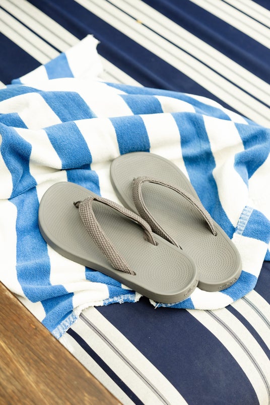 Flip Flop トング型の定番ビーチサンダルシルエット。素足感覚の快適さを最大限に楽しめる一足。ビーチや屋外アクティビティに最適です。