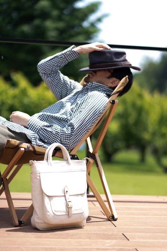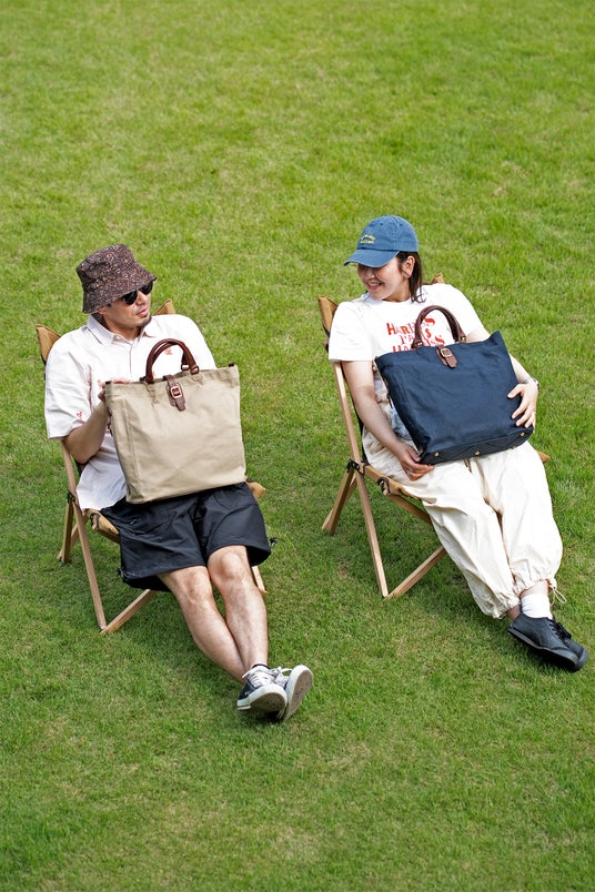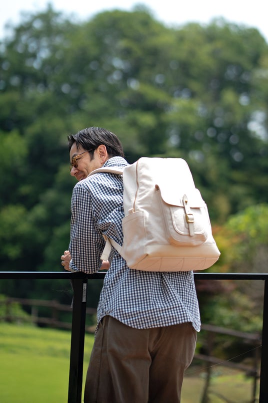 今回の新作では、ホワイト・グレー・ネイビーの3色をご用意。中でもホワイトは、帆布のナチュラルな風合いを最も楽しめるカラーで、夏のスタイリングに映えるおすすめの一色です。暑さが続く今の季節に、涼しげな印象を添えてくれます。