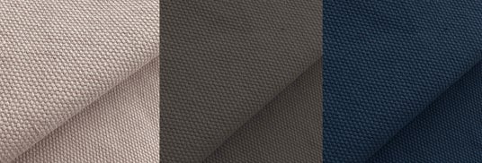 このシリーズに使用されている「倉敷帆布」は、100年以上の歴史を誇る岡山県倉敷市で織られた国産帆布。旧式のシャトル織機でゆっくりと織り上げられることで生まれる、不均一な“むら”が独特の風合いを生み出しています。職人の経験と感覚によって織られる帆布は、大量生産では味わえない唯一無二の素材です。