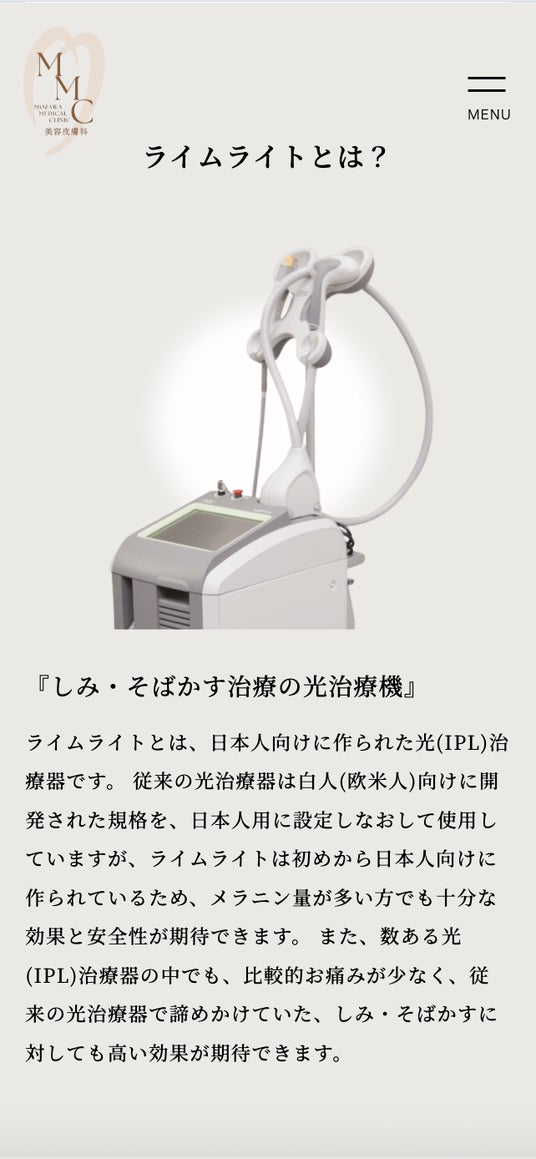 全面的にリニューアルした新HP(https://mozawa-beauty.com)の柱は以下の3つとなります。