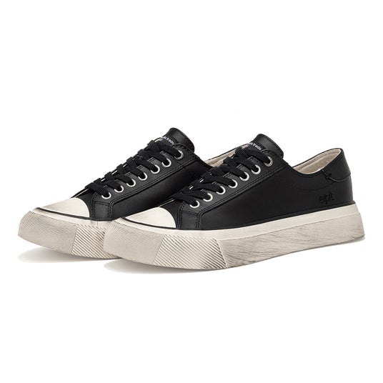 クラシックキャンバスをベースに、クレープ調アウトソール、ワックス加工のフォクシング、起毛レザーなどをレイヤード。