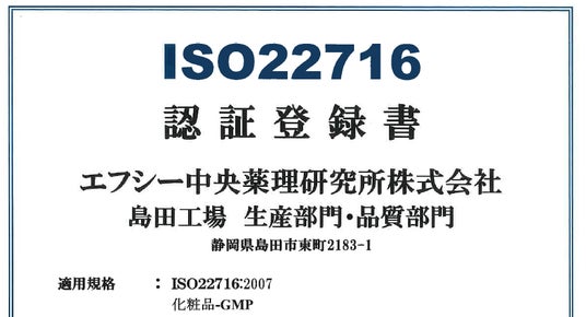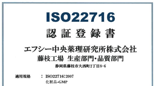 化粧品OEM企業としてスキンケア製品からメイクアップ製品まで、さまざまな化粧品製造を手がけるエフシー中央薬理研究所株式会社(代表取締役:朝比奈 謙太)が2025年10月に国際規格であるISO22716認証を取得いたしました。