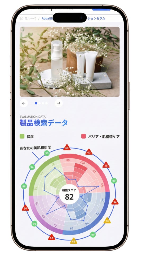 スキンケア製品がうたえる効能は薬機法により21種類の表現に限定されています。この制限により、ユーザーは製品ごとの違いを客観的に把握できず、感覚や口コミに頼って選ばざるを得ない状況が続いてきました。しかし肌状態は人によって異なり、同じ製品でも得られる結果は大きく変わります。「自分に合う製品がわからない」多くのユーザーが抱えていたこの課題に対し、ミルーペは“科学的な選択基準”を提供することを目指しました。