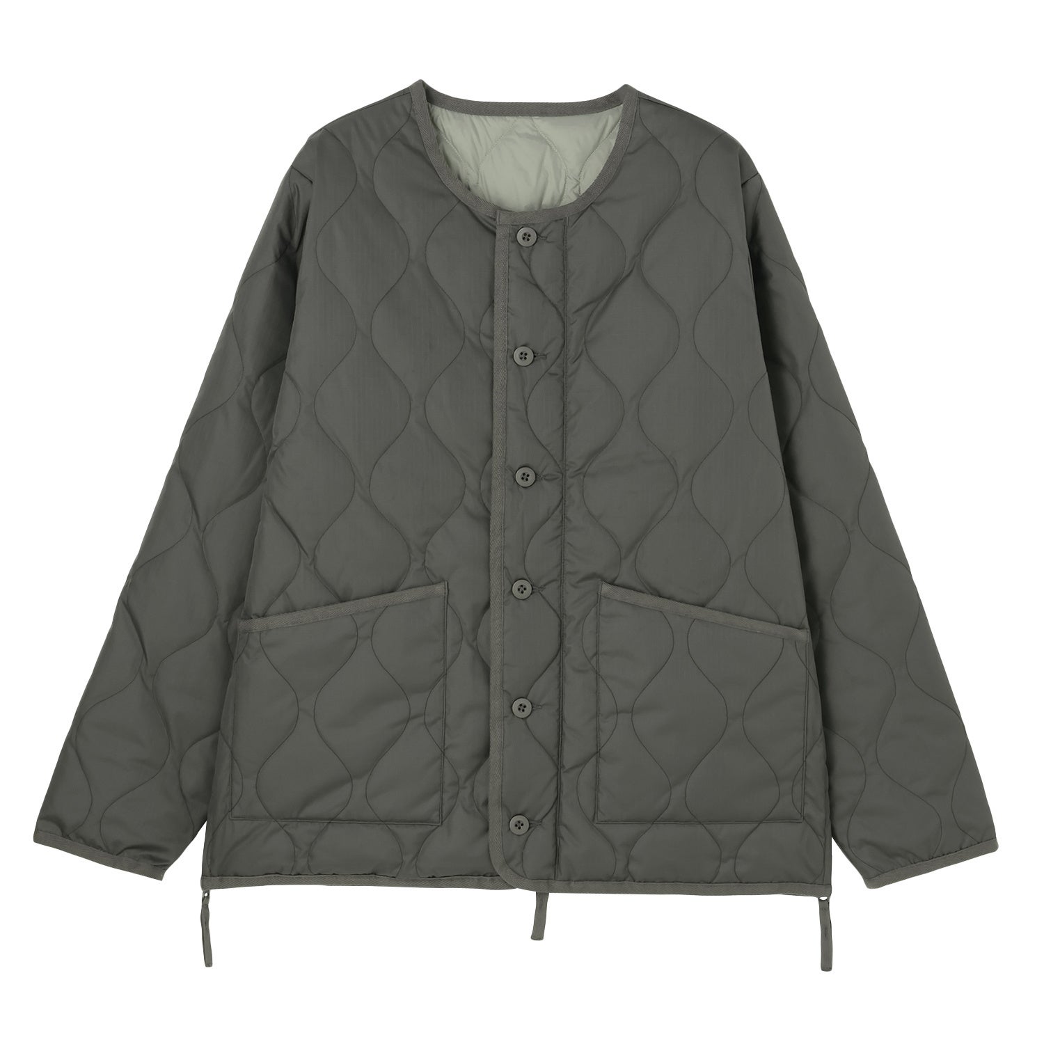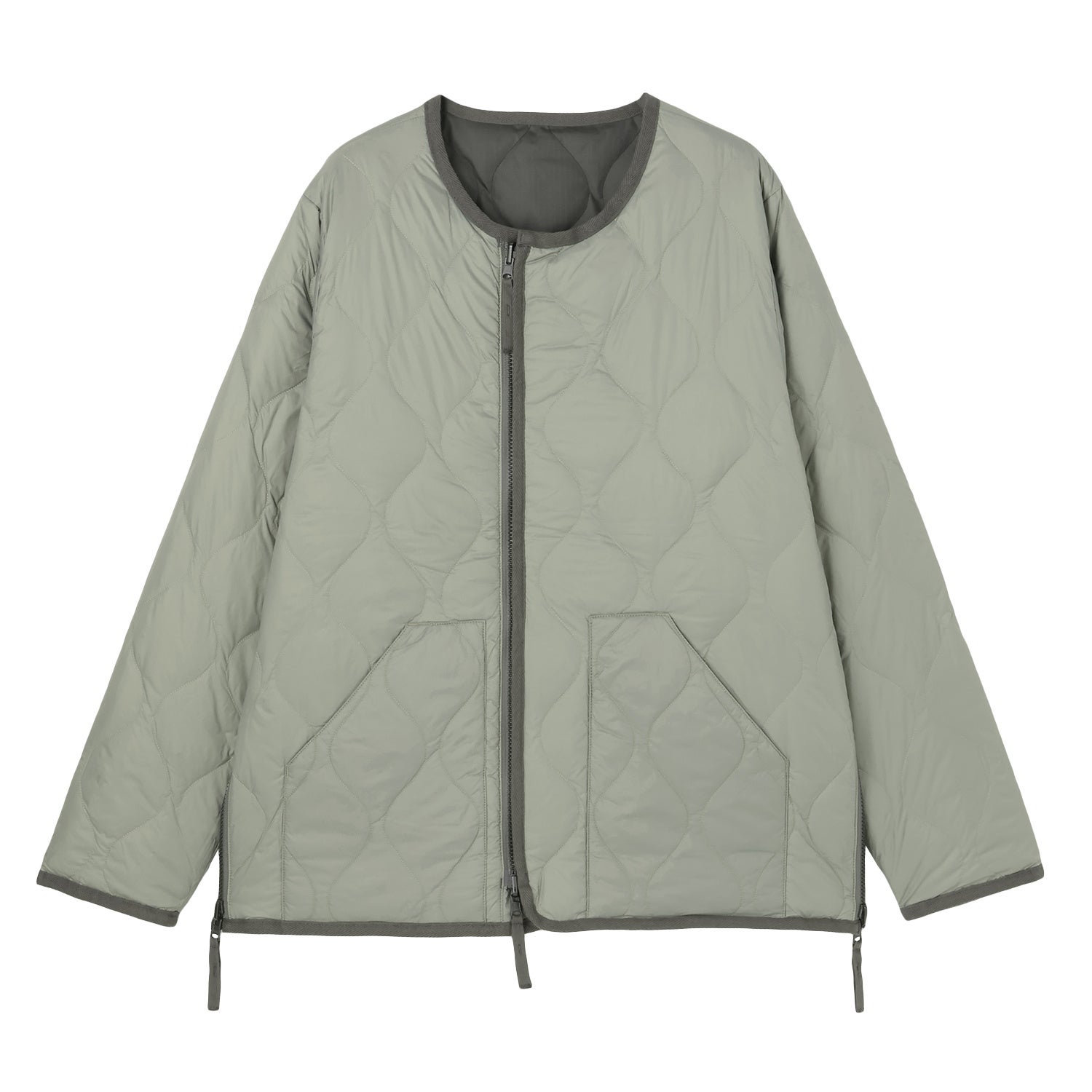オッシュマンズ初のTAIONメンズ別注モデル。ミリタリーライクなデザインをベースに、表裏で異なる生地を採用した完全リバーシブル仕様。表は丈夫なリップストップ地、裏は柔らかく軽やかなナイロン素材。両面のダイヤキルトステッチが立体感を生み出し、クラシックかつ都会的な印象を演出。スリット入りの裾設計で可動性を確保し、重ね着にも最適な仕上がり。