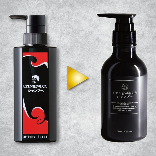 独自開発素材「ピュアブラック」(※1)を配合した、シリーズ累計100万本以上(※2)のロングセラー「ヒロシ君が考えたシャンプー」が、価格そのままに増量&パッケージを刷新しリニューアルいたしました。