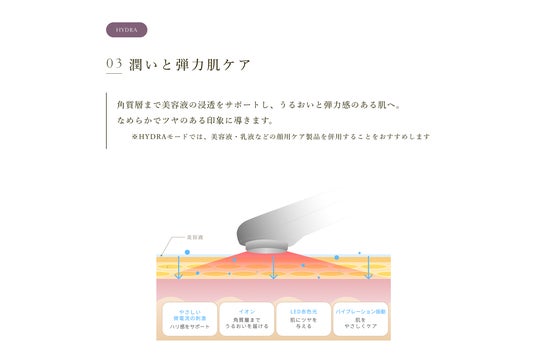 やわらかな温感とクールモードで肌を整え、化粧品がなじみやすい状態へ。