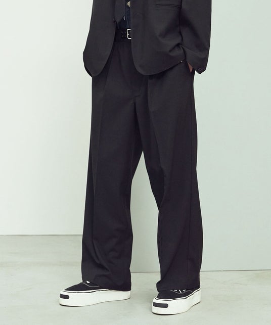 セミワイドなストレートシルエットを採用しており、カジュアルスタイルから上品スタイルまでどちらも対応出来るパンツとしてデザイン。