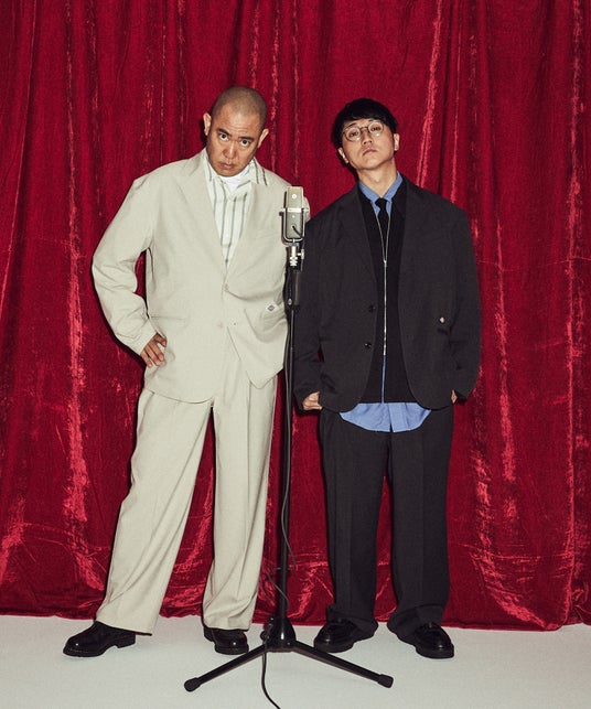 キングオブコントの王者でもあり、同時にM-1の頂点も目指すタフな2人が、セットアップを魅力的に着こなしている。