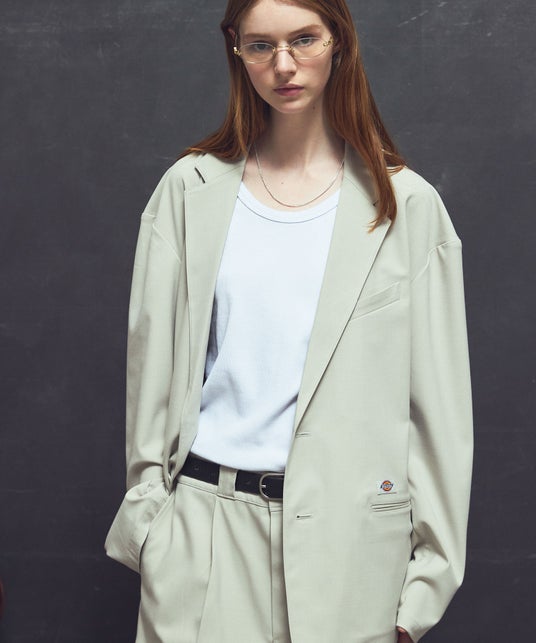 ジャケットはラフな印象ながら、どこか上品でカチッとした空気感のテーラードジャケットデザインを採用。