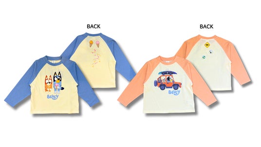 ◇【ブルーイ】ラグランプリントロンT(サックス・オレンジ)
