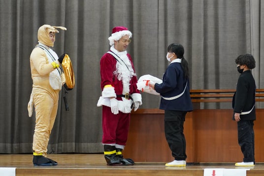 2025年12月24日、岡山県倉敷市立乙島東小学校の4・5・6年生へ夜光タスキ81本の贈呈式を行いました。