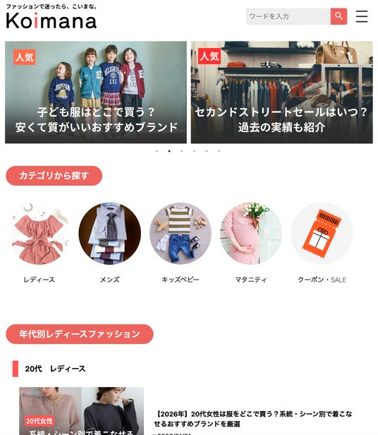事業譲渡後、当社はKoimanaのコンテンツ品質向上と運営体制の再構築に取り組み、ジャンルごとの記事整理、サイト内導線の見直し、古い記事を最新情報に更新するなど、アップデートを進めてまいりました。また、レディース・メンズ・キッズを中心に、ユーザー視点で役立つレビュー・比較記事の拡充にも注力し、日常のファッション選びに寄り添うメディアとしての価値向上を図っています。