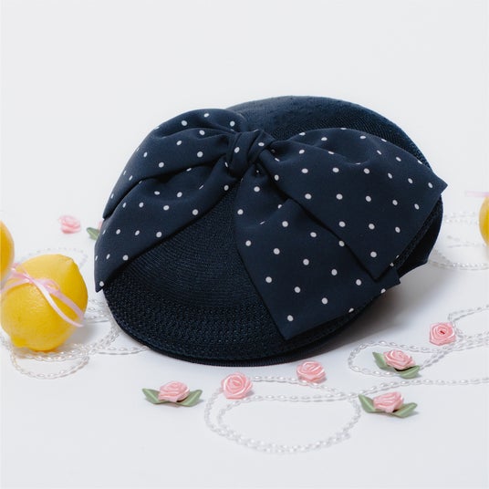 大胆なアレンジ: クラシックなハンチングに、大きなリボンとパールを贅沢に配置。