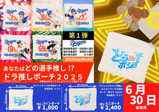 株式会社泉広(本社:愛知県名古屋市、代表取締役:廣井栄治)は、中日ドラゴンズの承認を受けたライセンスグッズとしてドラ推しポーチ2025の第1弾を直営のお土産ステーションなごや「サムライの国」名古屋ヒルトンプラザ店にて6月30日から発売します。