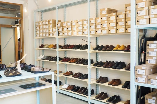 店舗では、在庫のあるすべてのラインナップをご覧いただき、試着できるほか、スタッフがお一人ずつしっかりとフィッティングし、革靴選びのお手伝いをいたします。