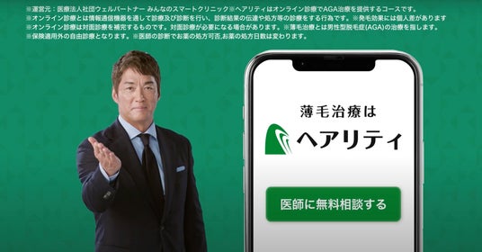 月々2,980円のオンライン薄毛クリニック「ヘアリティ」は2025年3月29日より新たなテレビCM(長嶋一茂さんver)を放映します。ヘアリティは安くて便利で続けやすい「飲む薄毛治療」を提供します。