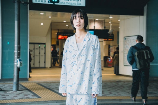 ジャケット襟が特徴的なデザインで、「一日中パジャマ姿で過ごせたら」というコンセプトのもと、室内外を問わず自然体で着用できる一着です。
